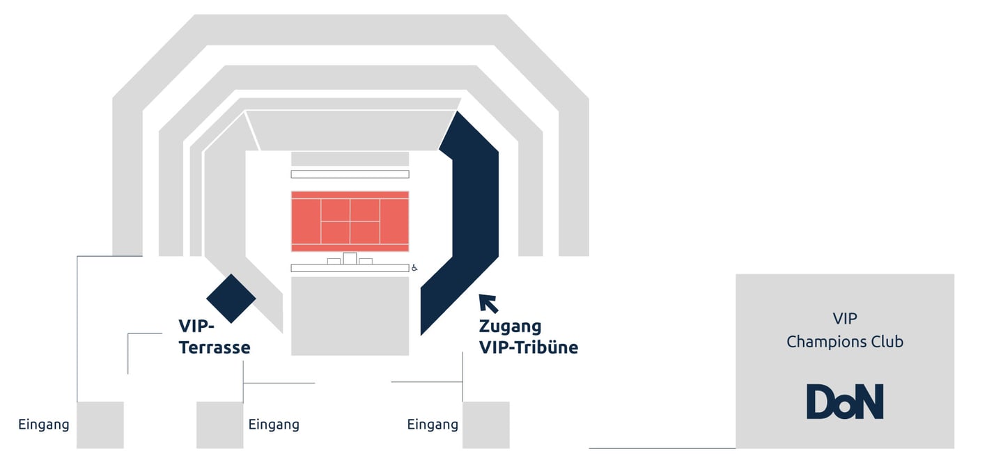 Der VIP Check-In befindet sich beim Zugang zum Champions Club am Center Court. Bitte holen Sie dort Ihr Zutrittsband ab.