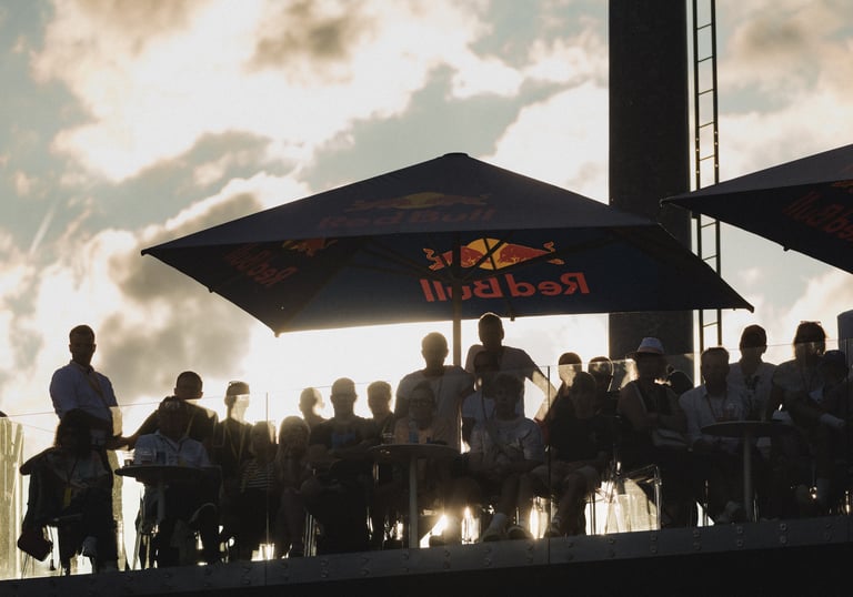 Die VIP-Terrasse befindet sich auf der Nord-West Seite. Sie erkennen diese leicht an den großen Red Bull Sonnenschirmen.